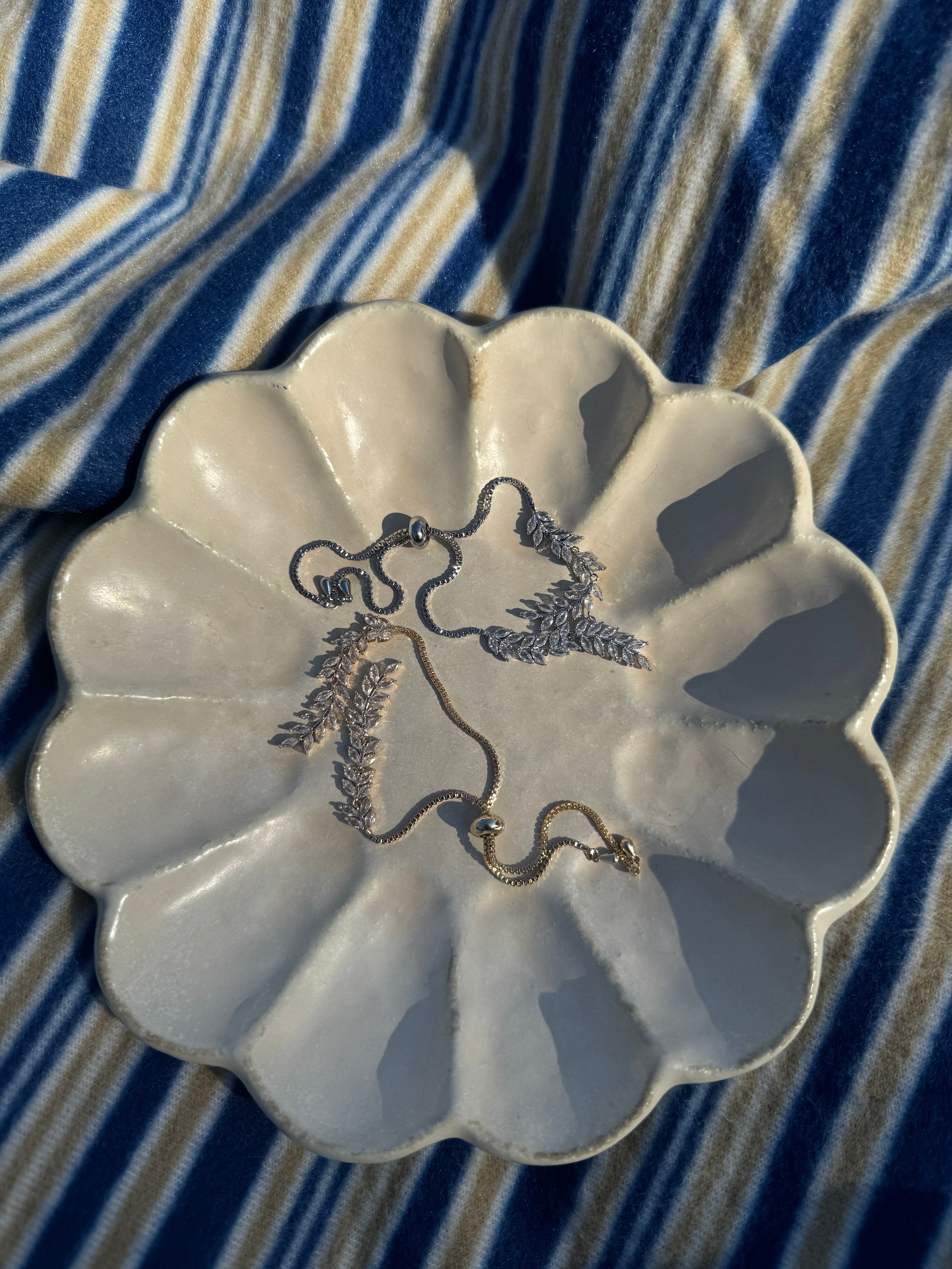 Inspired by nature, the Willow Bracelet features graceful leaf-shaped designs set with sparkling cubic zirconia stones. Available in gold and silver, it captures organic beauty while staying elegant and versatile. A favorite for its delicate, feminine style.