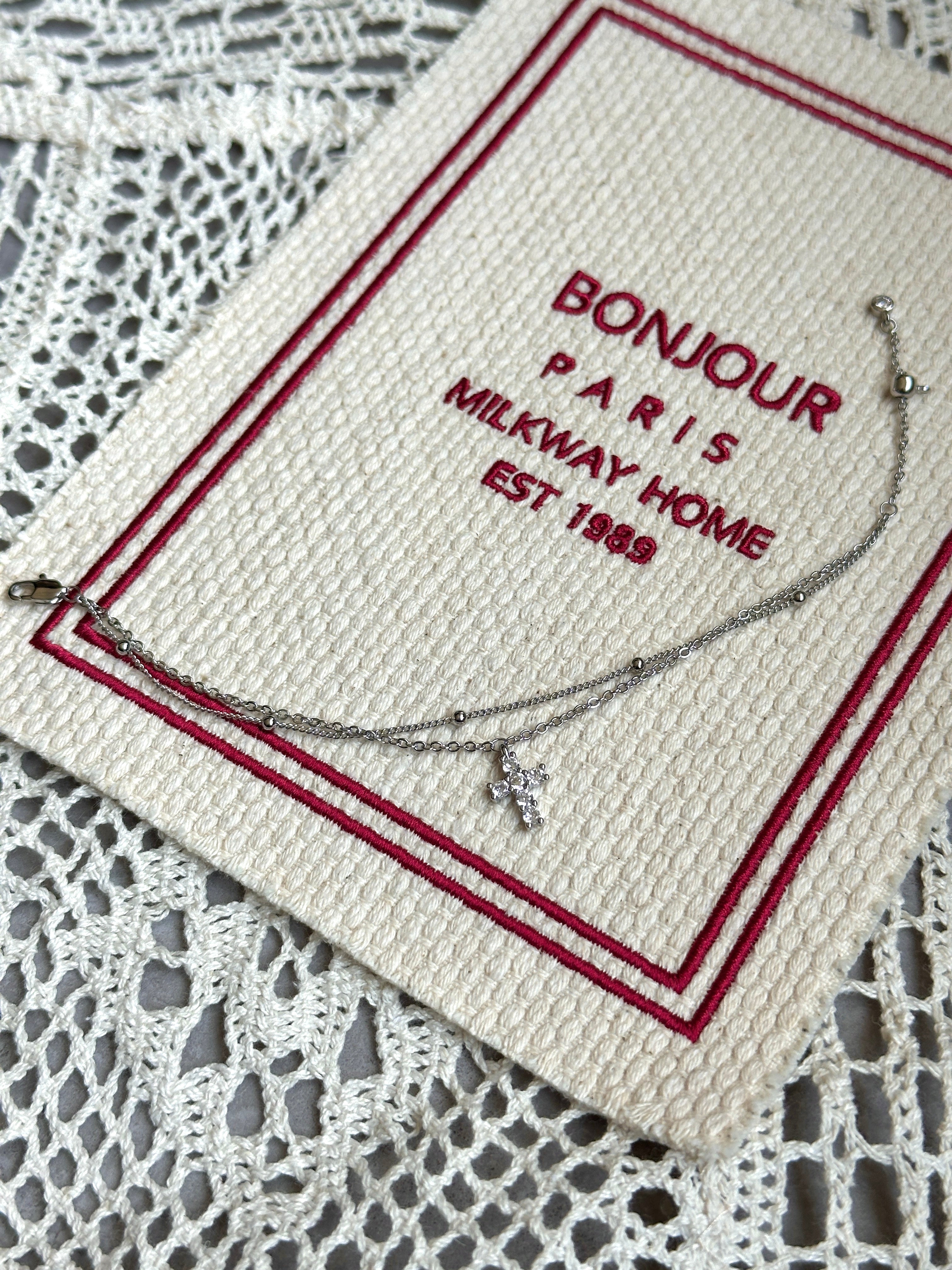 Clean cross design with smooth edges and a high-shine finish. Easy solo piece and layers well.