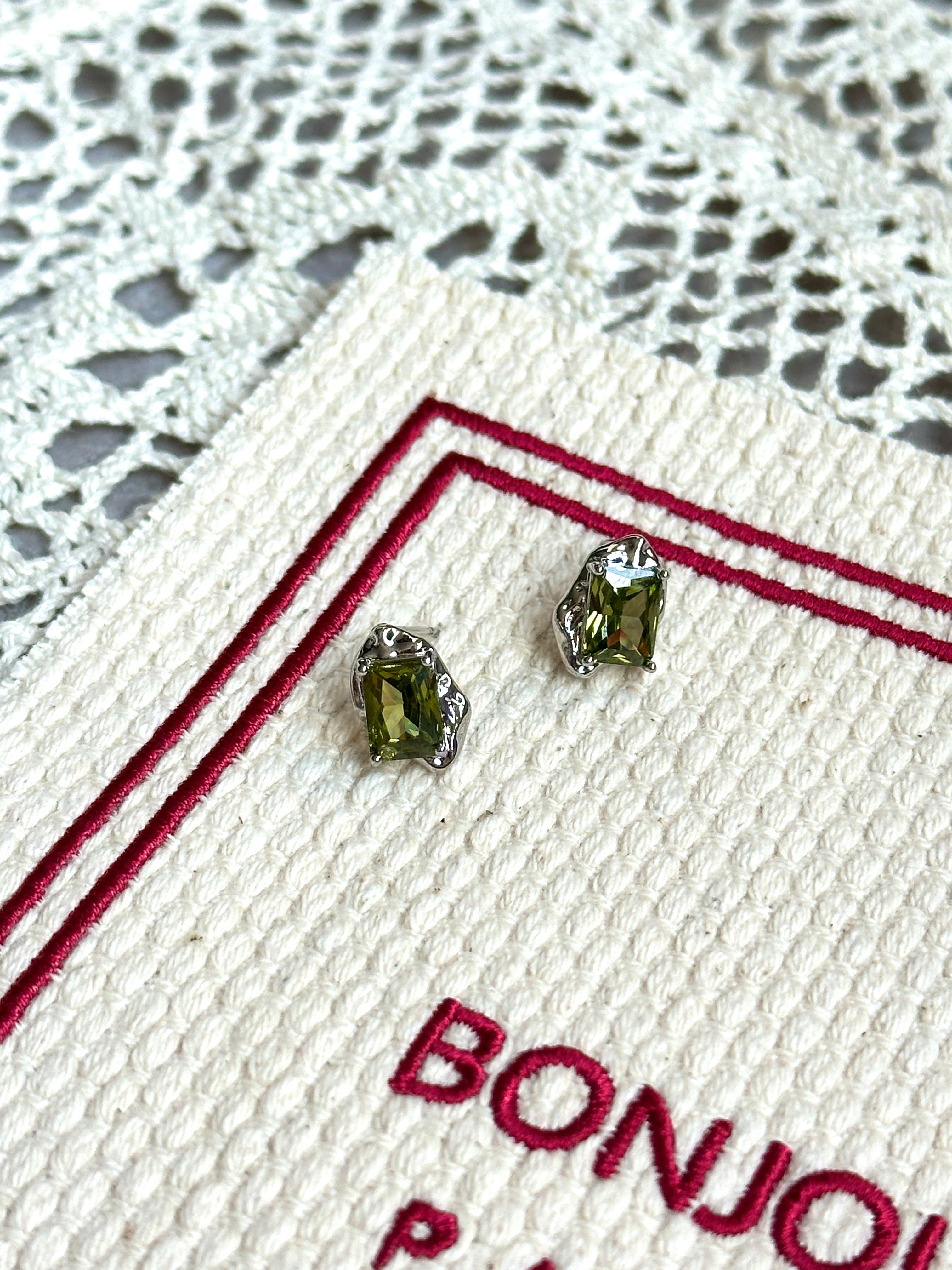 Minimal setting with an emerald-tone stone that catches light. Easy solo piece or stacker.